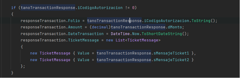 Si el response del servicio de Tano tiene código de autorización diferente de 0 quiere decir que fue exitosa la transaccion