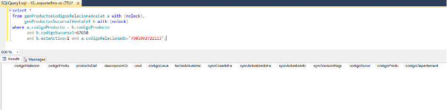 Paso 3.- Validamos que el sku 7501092722113 sea válido para la sucursal 67650: