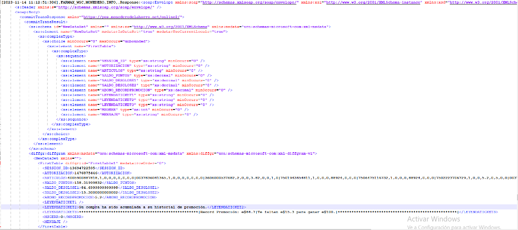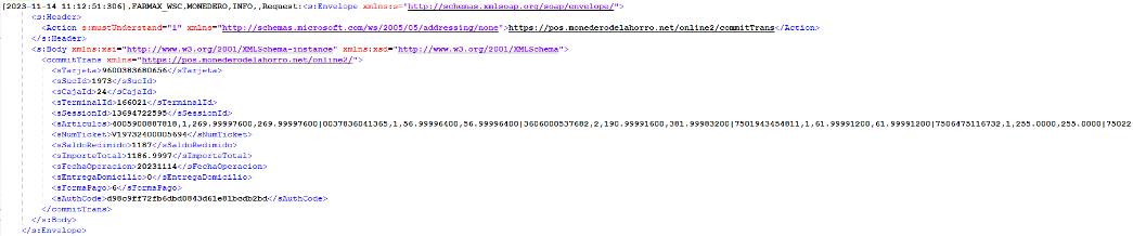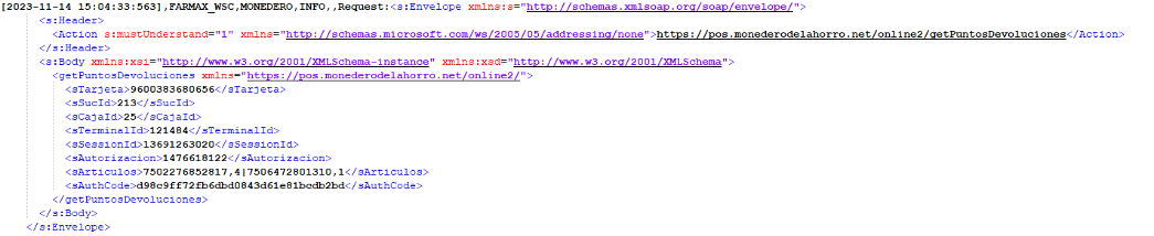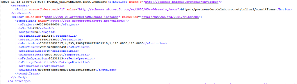 Se consultan los logs del monedero para saber las operaciones realizadas con el monedero 9600383680656.