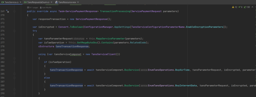 El método GetDescription mapea la respuesta de Tano con una Enumeracion que tiene los ocdigos de error: