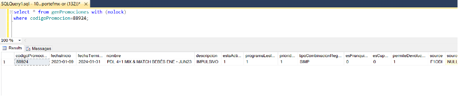 select * from genPromociones with (nolock) where codigoPromocion=88924;Procedimiento de solución